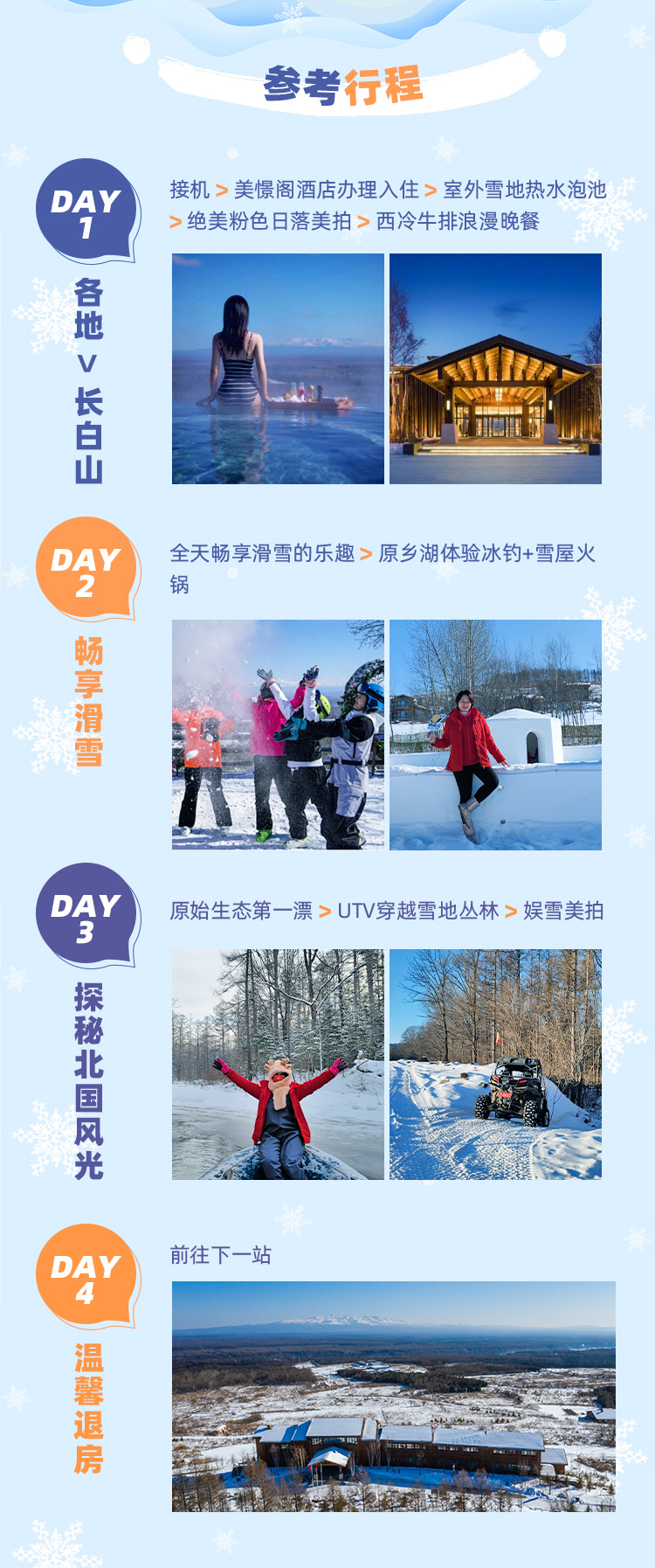 5、每间房最多包含2成人及1位12岁以下儿童早餐、娱雪&滑雪权益,娱雪乐园开放时间以滑雪场通知为准。