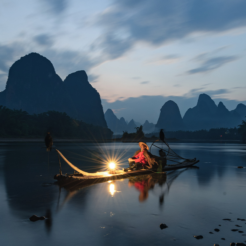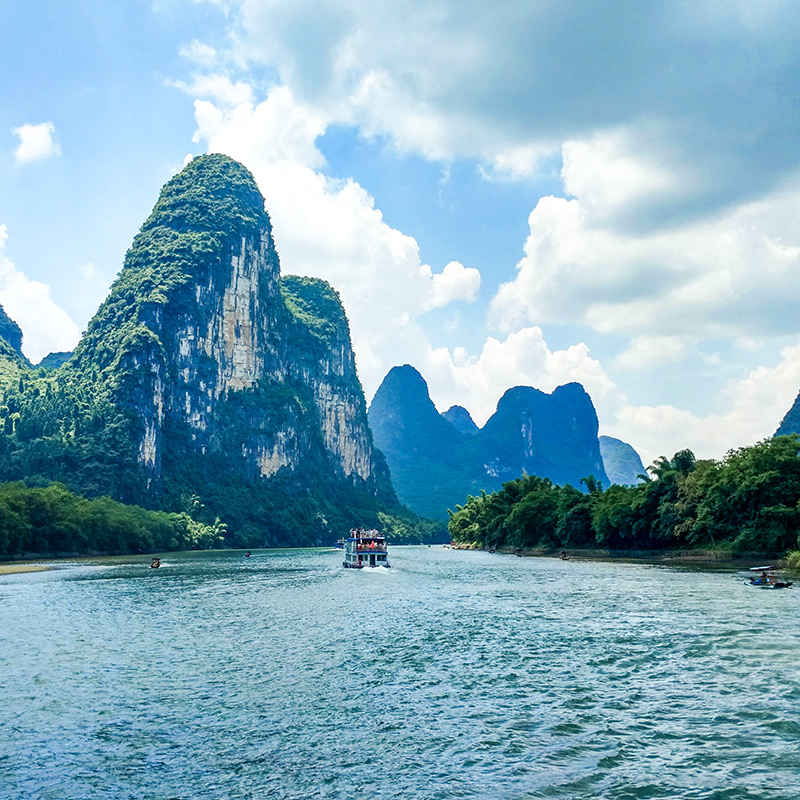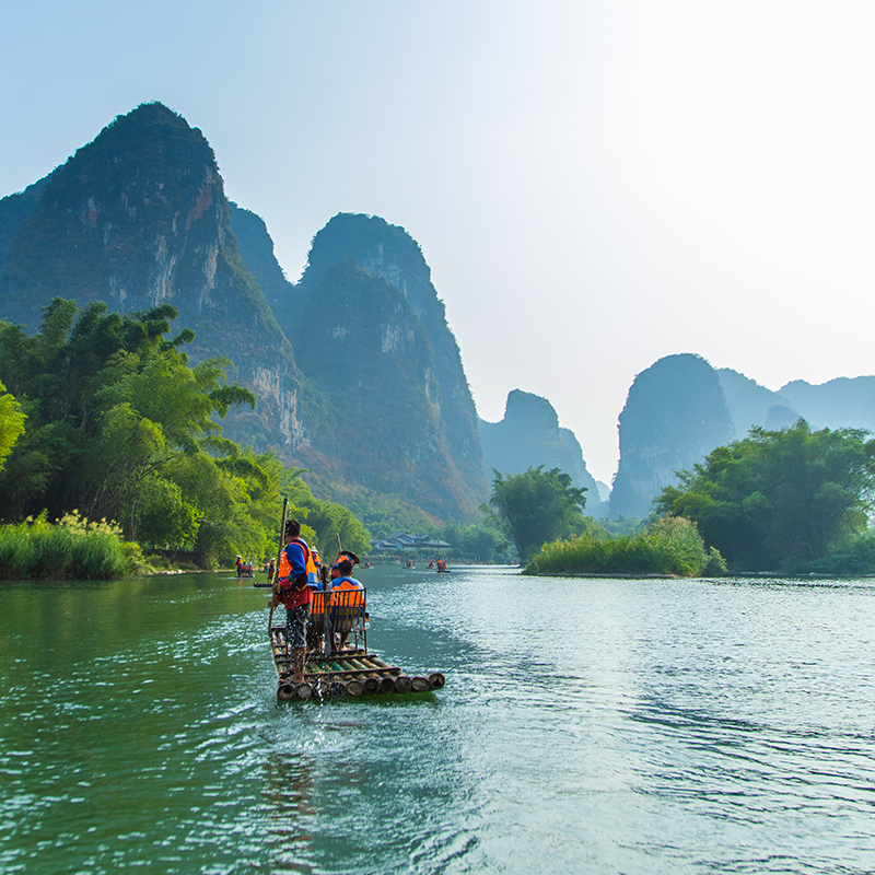 2)特色体验:桂林两江四湖非遗游船、桂海晴岚下午茶、遇龙河竹筏、渔舟唱晚鸬鹚捕鱼表演